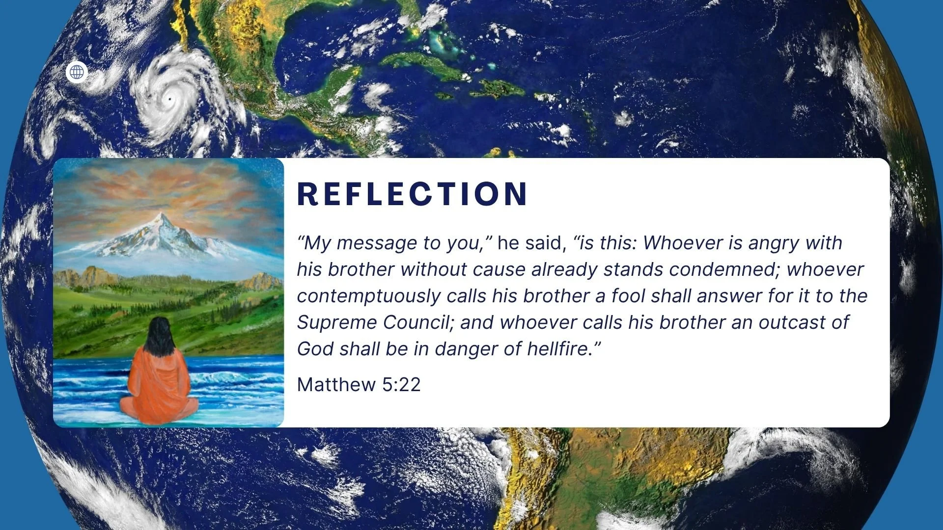 “My message to you,” he said, “is this: Whoever is angry with his brother without cause already stands condemned; whoever contemptuously calls his brother a fool shall answer for it to the Supreme Council; and whoever calls his brother an outcast of God shall be in danger of hellfire.”